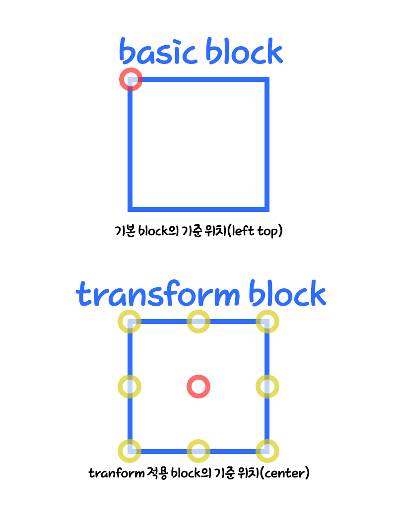 transform은 기존 요소와 다르게 요소의 중심을 기준점으로 인식합니다.