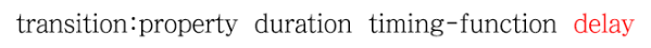 | transition-delay | 애니메이션 시작 전 딜레이 시간 | 0 (기본값) |