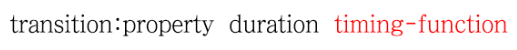 | transition-timing-function | 애니메이션 함수 | ease (기본값) |