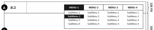 B. 메뉴에 마우스 올렸을 시 서브 출력하기(슬라이드업다운 구조)