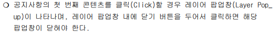 B. 공지사항 첫 글 클릭 시 팝업 보이기