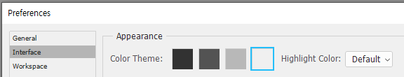 1. Interface : Color Theme 를 선택하면 포토샵의 인터페이스 색상을 설정할 수 있습니다.