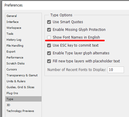 4. Type : show Font Names in English