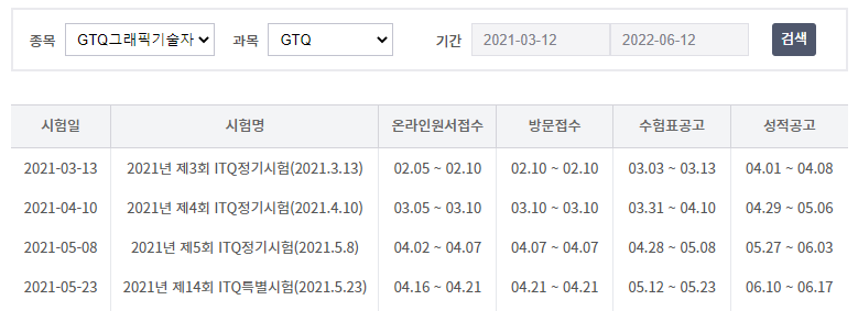 또한 GTQ 급수를 잘 확인하고 1급인지 선택한 후 각 시험장마다 설치되어있는 프로그램을 확인할 수 있는데