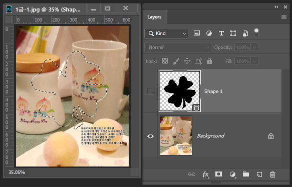 2. 선택영역 잡혀있는 상태에서 이미지 레이어 누르고 아래 레이어마스크 아이콘 클릭 적용 |
