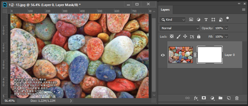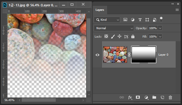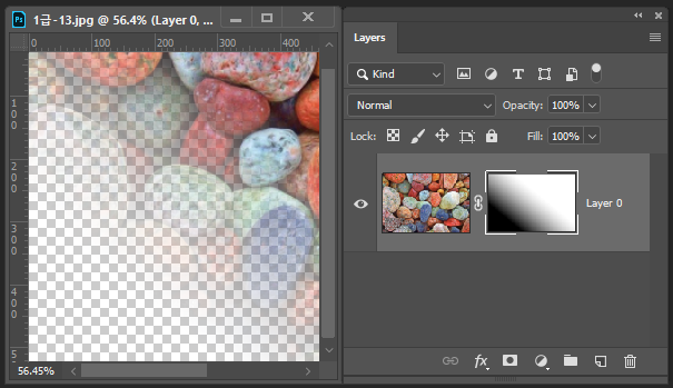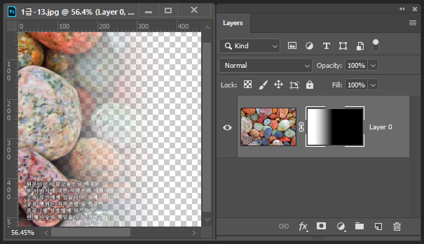 * 레이어 마스크는 가로방향, 세로방향, 대각선 방향의 문제방향을 잘 읽고 그라데이션툴(흑백)22 로 적용합니다.