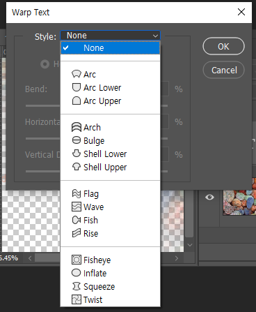 * 단, 출력형태에 글자가 Warp 옵션으로 왜곡이 적용된 경우가 있으니 이 점을 꼭 체크해야 합니다.(아래참고)