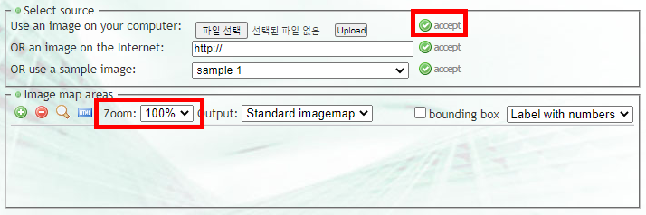 4-3. accept 을 클릭하여 이미지가 표시되게 하고 아래 zoom 25, 50, 100% 중 원하는 보기모드를 설정합니다.