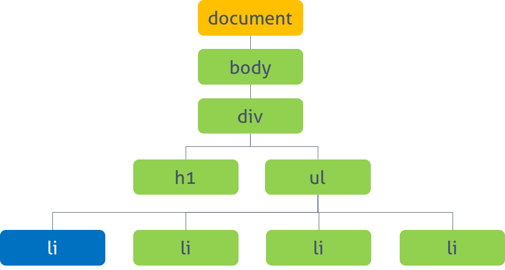 ul은 li라는 자식이 4개가 존재합니다. 그럼 자식의 자식이 4개가 있는 상태로 이 것을 ul - li가 아닌