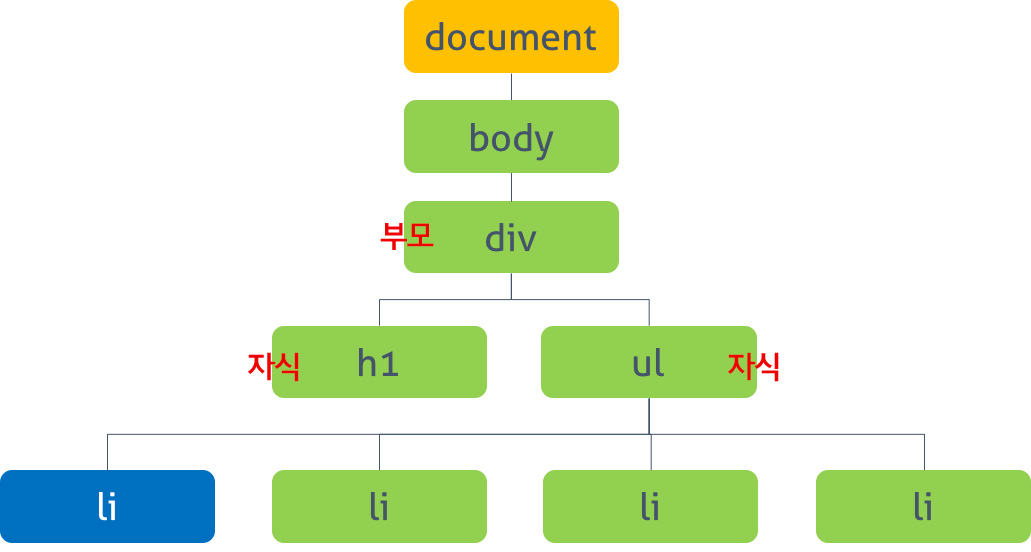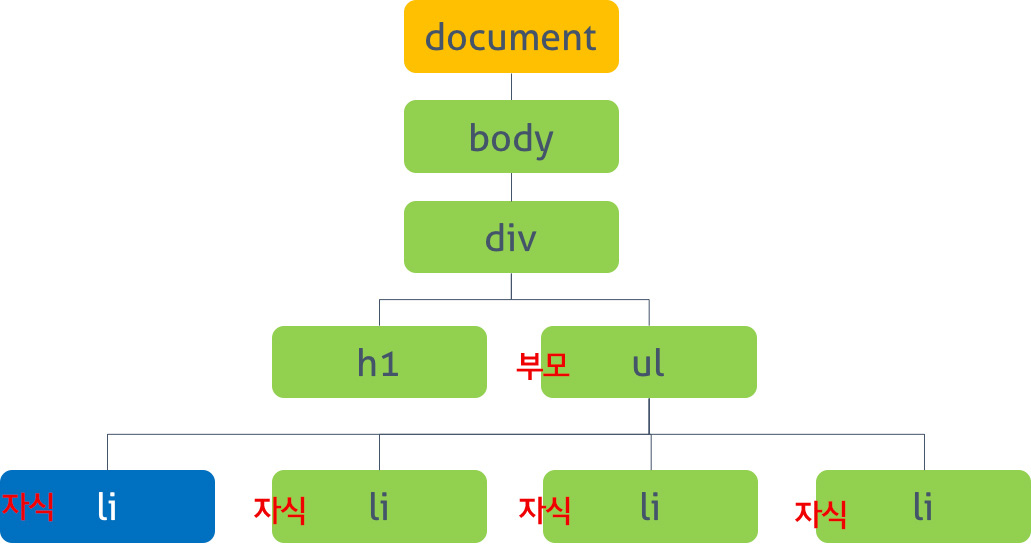 ul - li를 비교했을 때 ul이 부모, li가 자식 관계입니다.