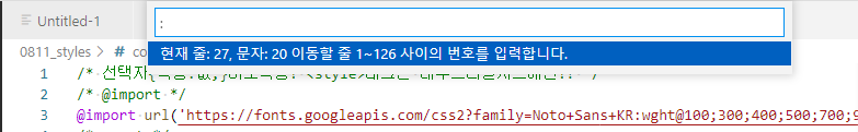 * 단축키 입력 시 아래와 같이 현재 위치가 나타나며 원하는 위치를 숫자로 입력하면 이동할 수 있습니다.