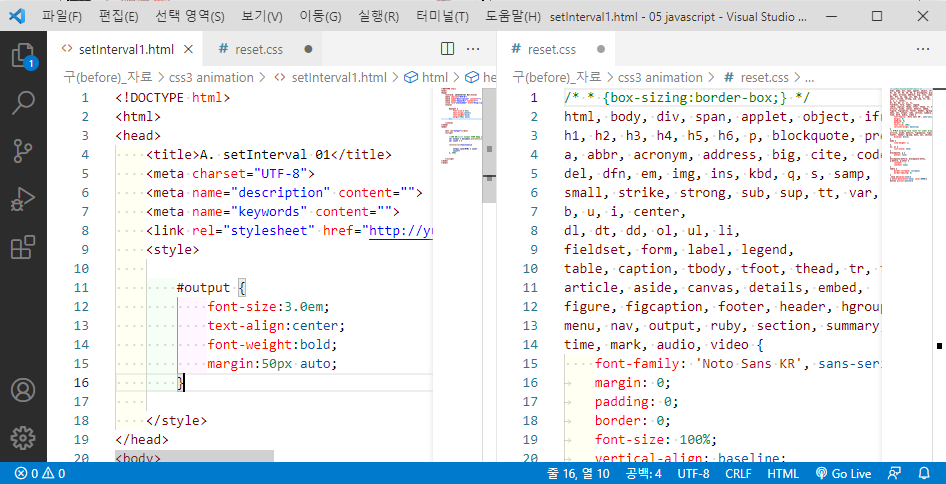 * vs 분할 된 화면을 닫고 싶을 땐 창 닫기(Ctrl + W)를 눌러주세요.