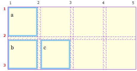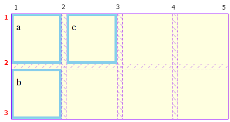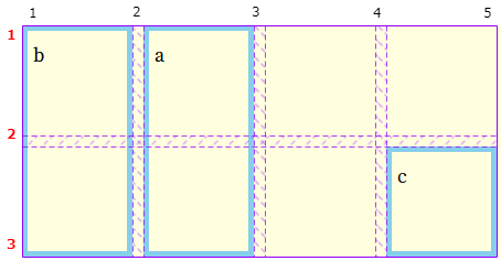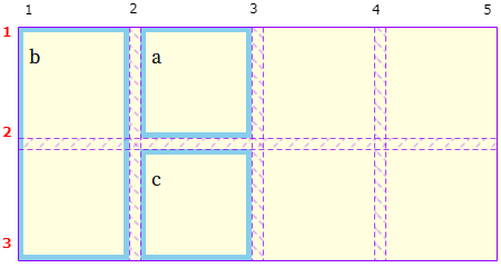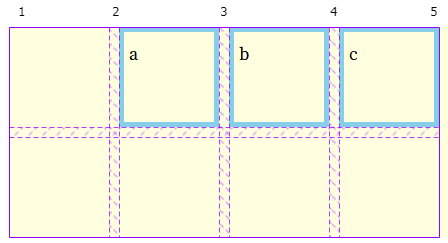 * item1(a) column line 2부터 시작하도록 위치를 변경하면서 옆에 배치된 b, c와 함께 이동됩니다.