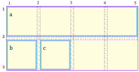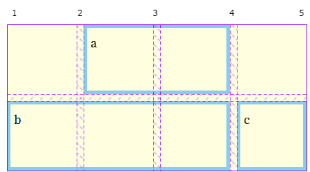 See the Pen CSS Grid-row, column number by elldia (@lutino) on CodePen.