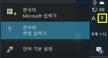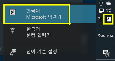 아래 작업표시줄에 있는 입력기가 변경되어서 생기는 문제!