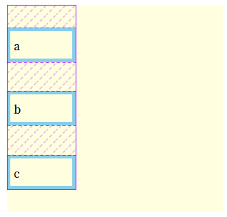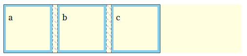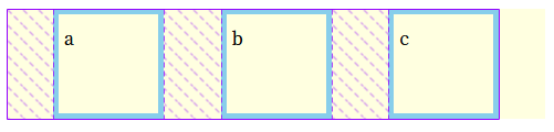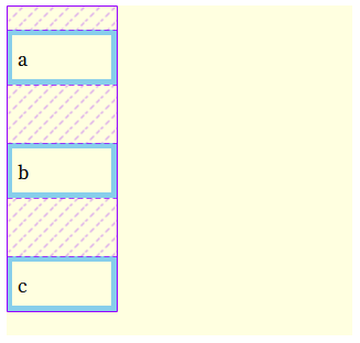 | space-evenly - space-around와 비슷하나 모든 공간을 동일하게 나눔 |