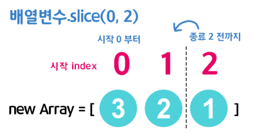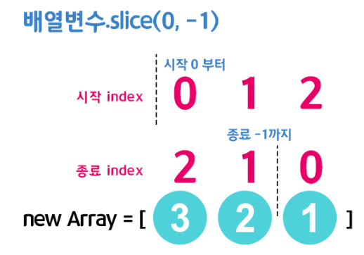 * 종료인덱스 : 미입력하거나 배열보다 큰 값 입력 시 배열 끝으로 인식 / 음수 지정 시 배열의 시작부터 인식