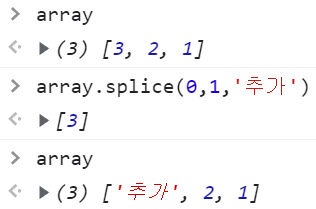 변수.splice(시작인덱스, 시작인덱스부터 제거할 요소 수, 추가요소)