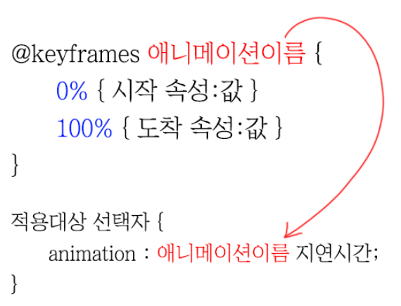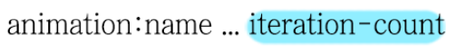 animation:이름 1s 3; /*지속시간 1초 간격으로 3번 재생합니다.*/