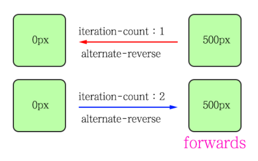 * @keyframes 시작 위치와 상관없이 animation-direction 방향에 따라 종료 위치에서 정지합니다.