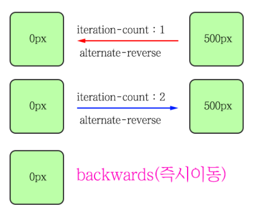 * animation-direction 방향에 따라 시작/종료 위치를 조합하여 자동으로 위치를 설정합니다.