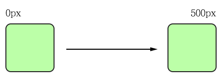 (아래) 왼쪽 기준 0px -> 500px 위치로 이동하고 싶은 애니메이션이 있다고 가정해봅시다.
