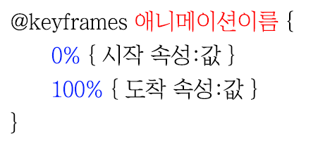 @keyframes을 선언하면 시작-중간-끝 동작을 생성하여 다양한 시간차 애니메이션 동작이 가능합니다.