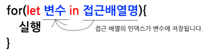 for(let 변수생성 in 접근배열명)