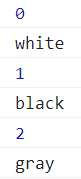 ▼ color배열의 white/black/gray의 데이터와 배열인덱스를 출력하고 싶습니다.