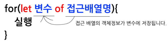 for(let 변수생성 of 접근배열명)