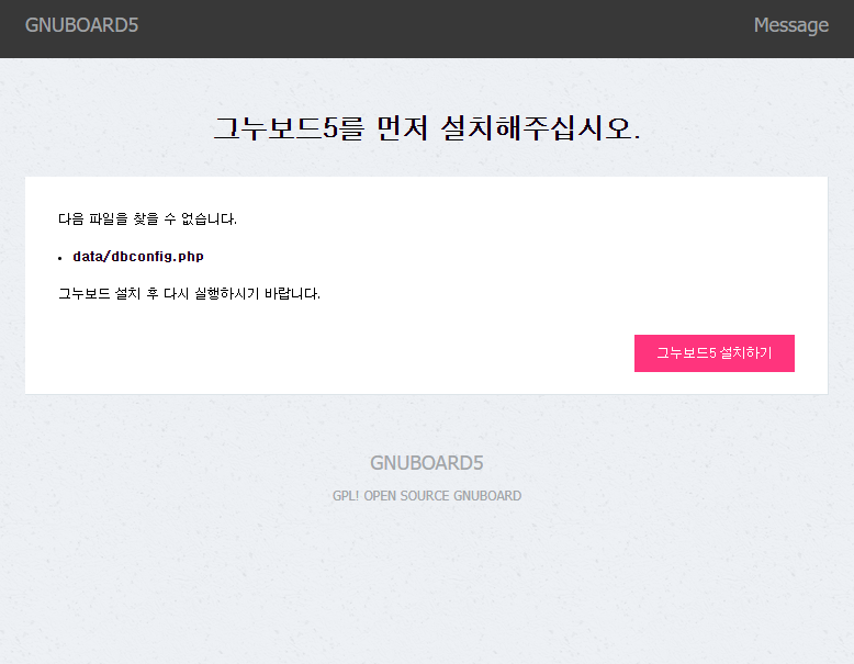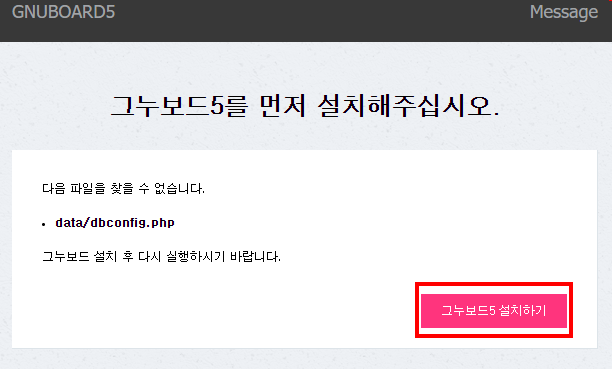 9. 설치 화면으로 돌아가서 그누보드 설치하기를 클릭합니다.