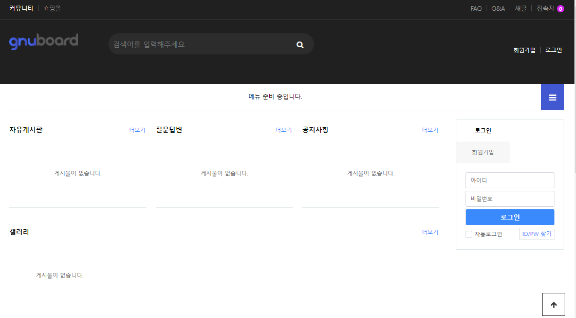웹 게시글, 회원정보, 최근 게시글, 갤러리 게시판 등을 관리하고 사용할 수 있습니다.