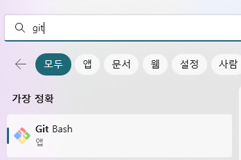 * 윈도우 검색창에 git 입력 후 Git Bash 클릭
