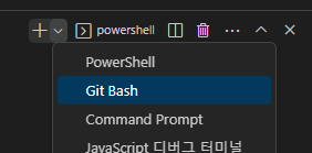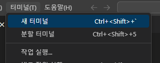 2. 터미널 -> 새 터미널을 실행합니다 ctrl + shift + `