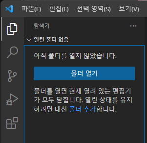 1. visual studio code 실행 후 편집기 폴더를 연결합니다.