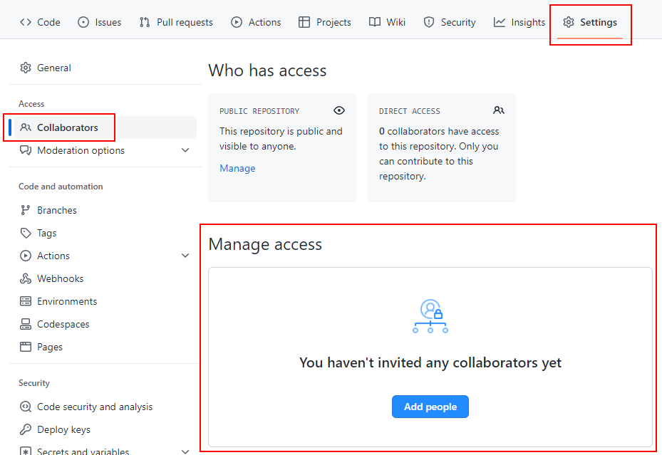 1. 협업할 저장소의 세팅으로 들어갑니다.