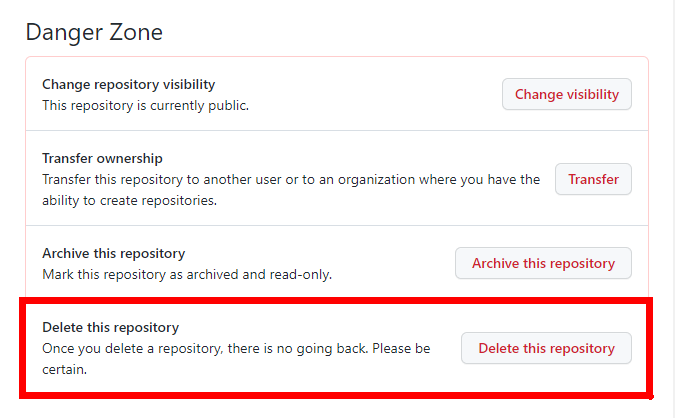 2. Delete this repository를 클릭합니다.