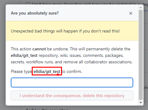 * 저장소 삭제는 임시 테스트용으로 가볍게 만든 저장소만 제거하고