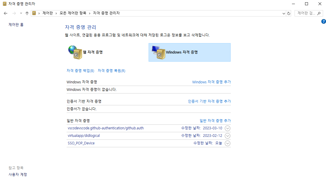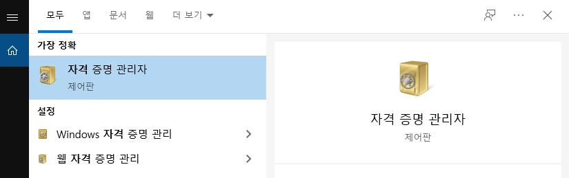 1. 윈도우 - 자격증명 관리자로 검색해서 들어갑니다.