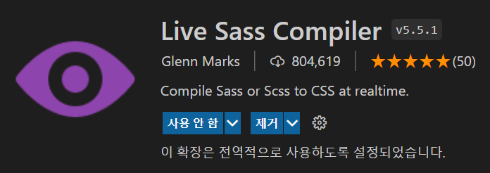 - 실시간 컴파일을 위해 vs code 플러그인 “Live Sass Compiler” 설치하세요.