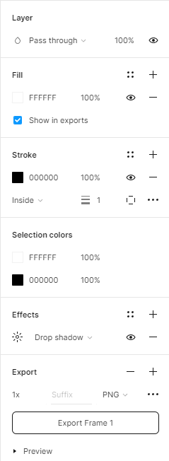 - Fill 면 색상/투명도/보기 유무