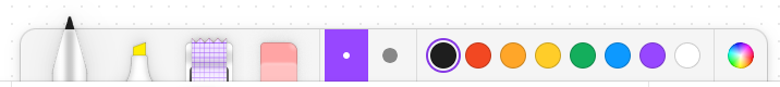 - Marker(M) → 연필, 형광펜, 장식테이프, 지우개, 크기, 색상 선택 제공