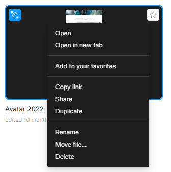 Figma 프로젝트(&초안) 목록 우클릭 메뉴