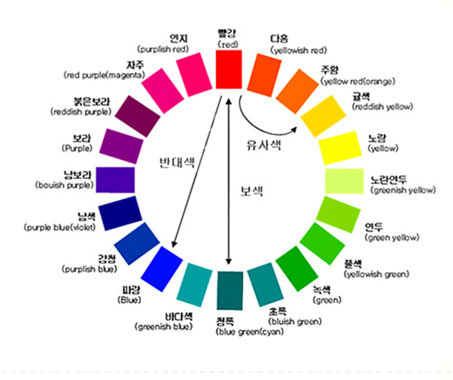 디자인 진행 시 색의 혼합을 고려할 때 먼셀의 20 색상환을 참고로 하여 제작하면 유사색/보색 등의 색상 정리를 쉽게 할 수 있으므로 꼭 참고하여 제작하는 것을 추천합니다.