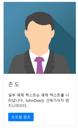 부트스트랩은 카드 클래스를 제공합니다. 이 클래스를 활용하여 위와 같은 카드결과를 간편하게 표현할 수 있습니다.
