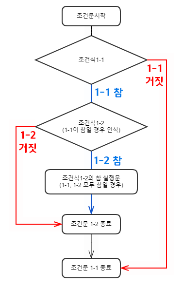 조건식1-1, 조건식1-2 참일 때 실행되는 구문
