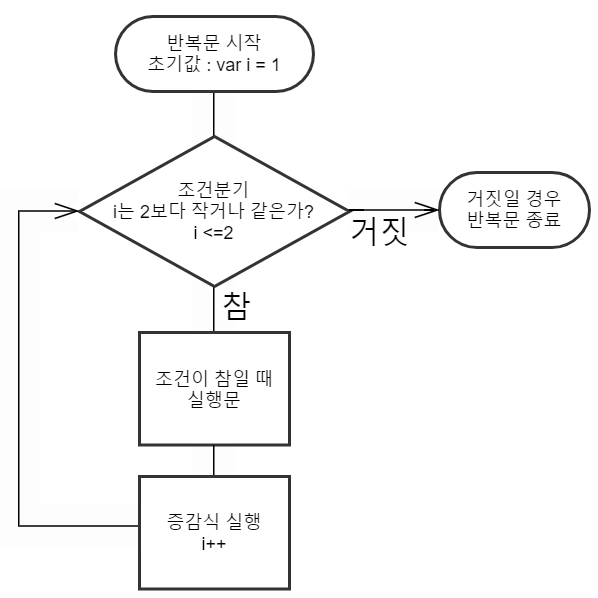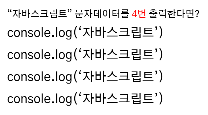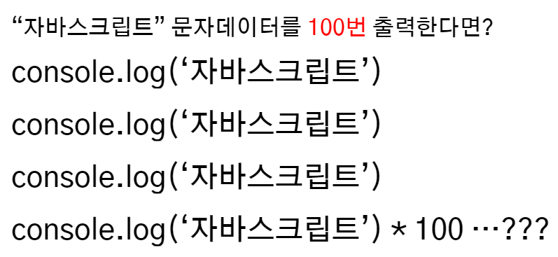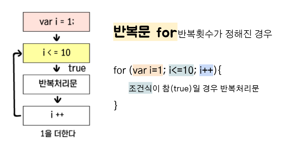 * 특정 구문을 여러번 반복해서 실행할 때 사용하는 자바스크립트의 제어문입니다.