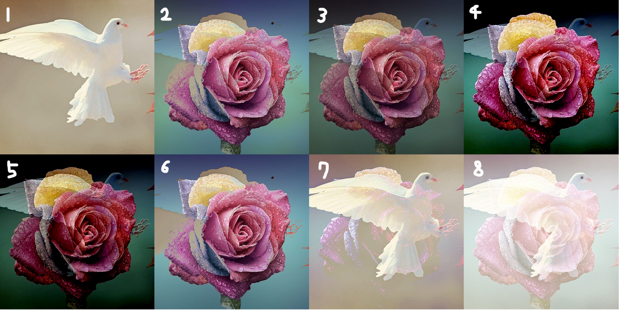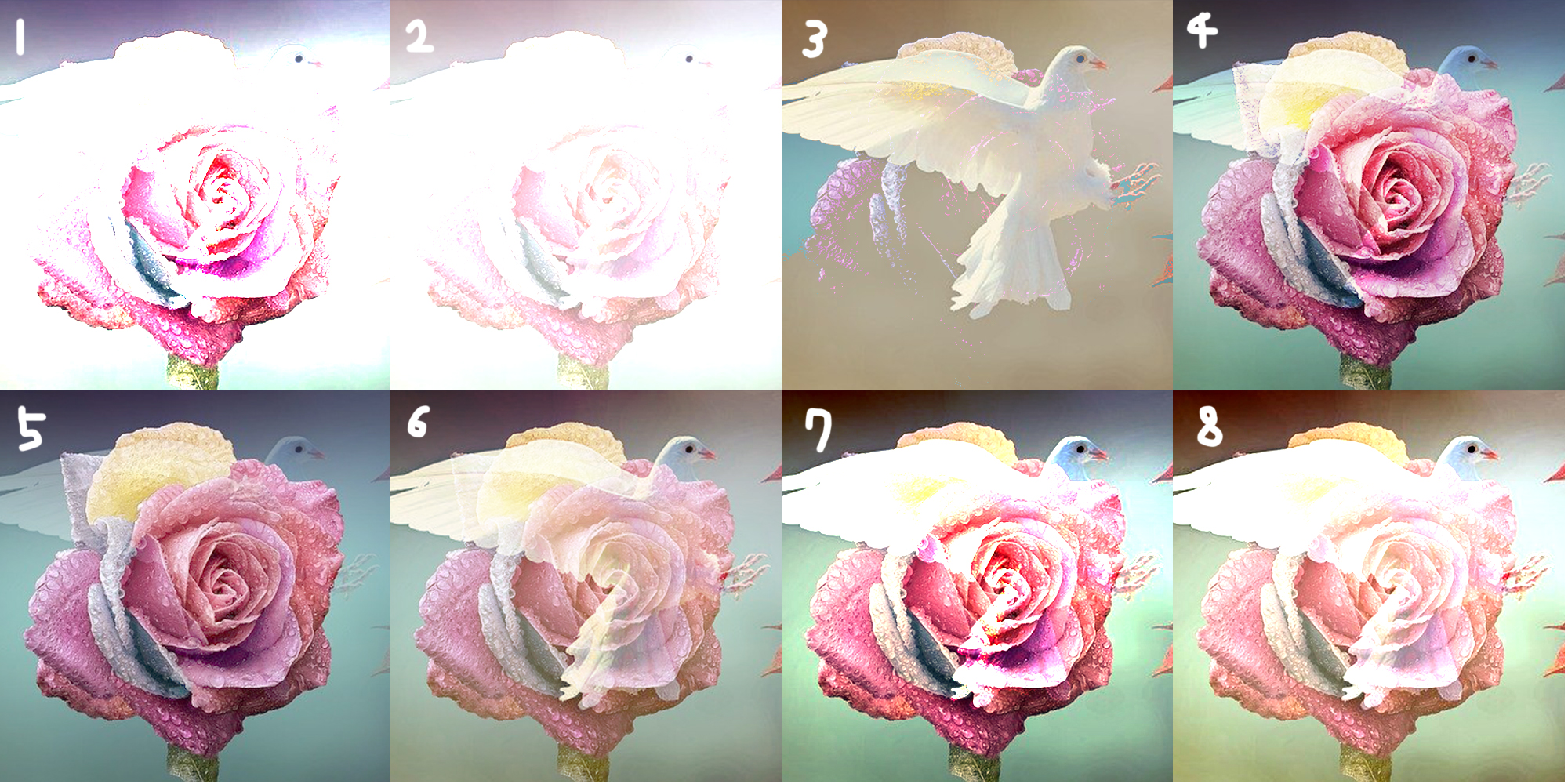 7. vivid light : 혼합 색상에 따라 대비를 증가 또는 감소시켜 색상에 burn or Dodge 효과를 적용한다.