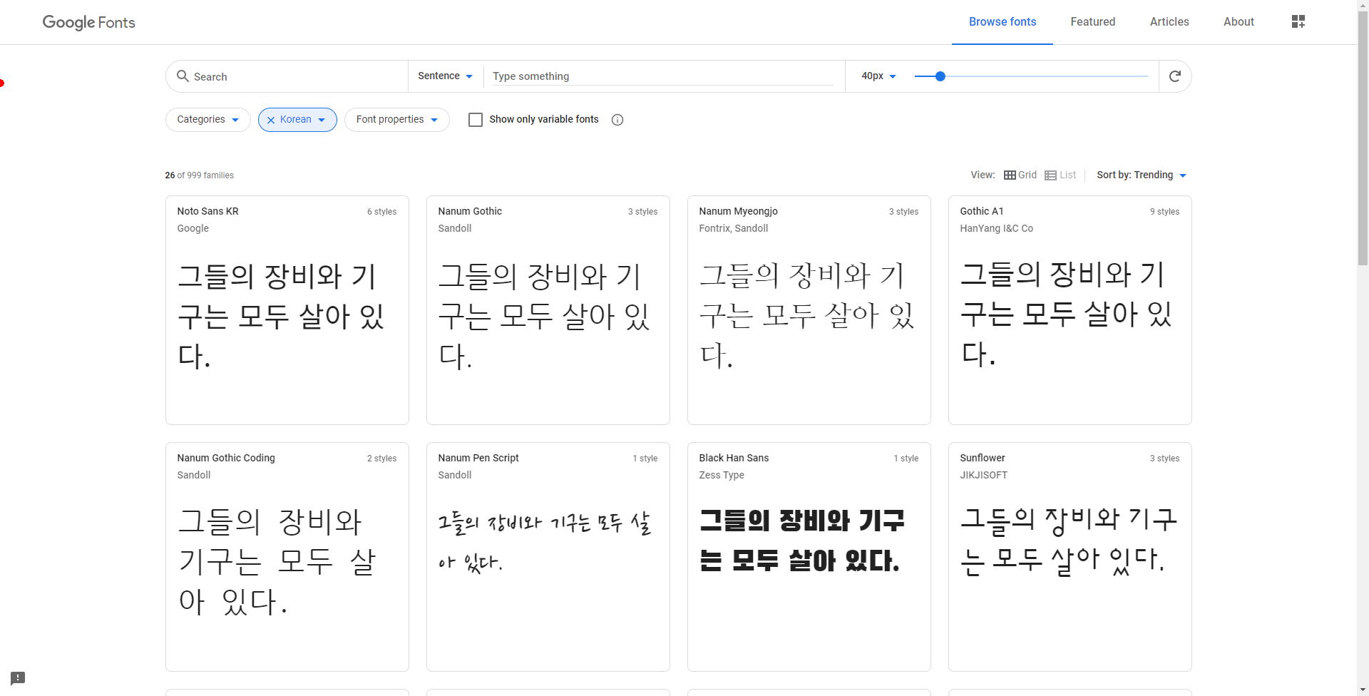 5. CSS rules to specify families 제목 아래 font-family를 복사하여 원하는 위치에 붙여넣습니다.