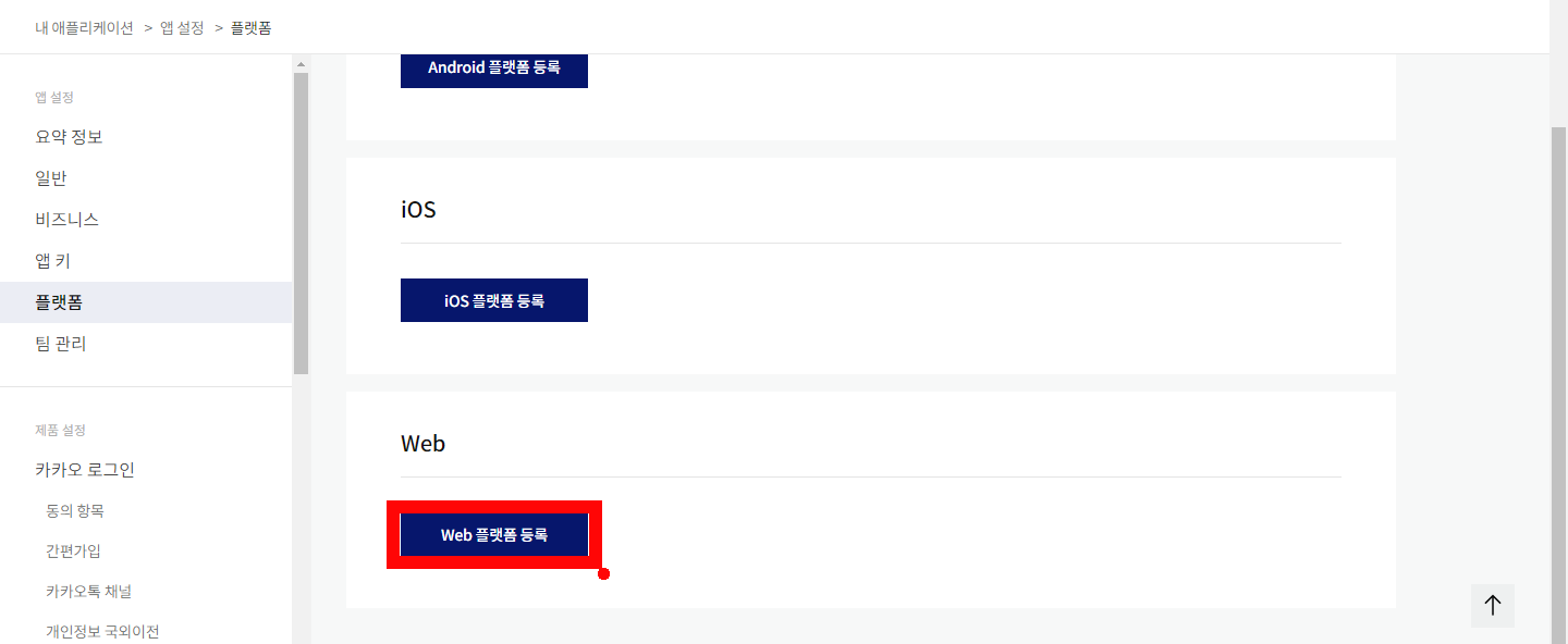 3. 웹 플랫폼 추가: 앱 선택 – [플랫폼] – [Web 플랫폼 등록] – 사이트 도메인 등록